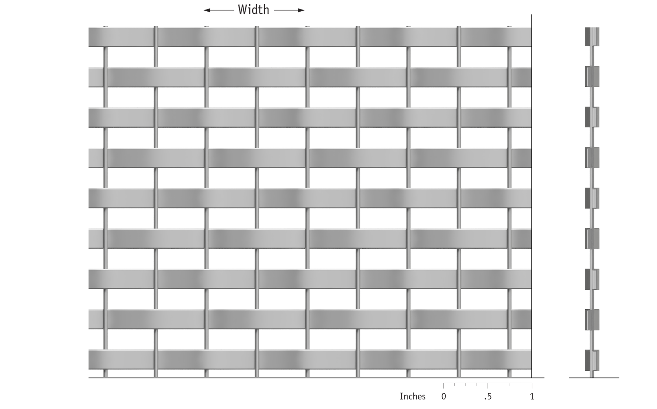 With a flat, ribbon-like wire, this rigid mesh has a smaller open area and is often used in framed applications such as ceilings, wall panels and railing infill.
