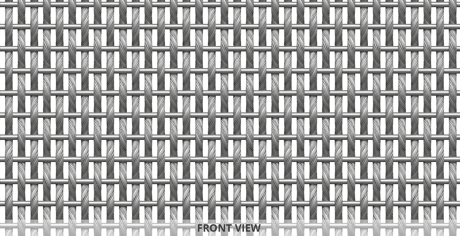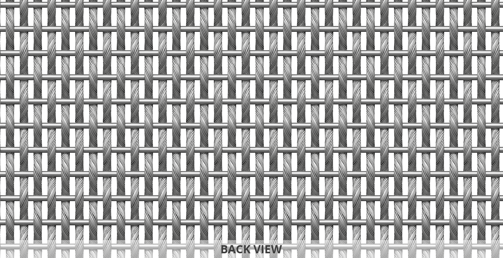This flexible cable mesh similar to Baltic uses a thinner warp wire. Spaced closely together, this mesh has low open area, creating a dense, impact-resistant surface.