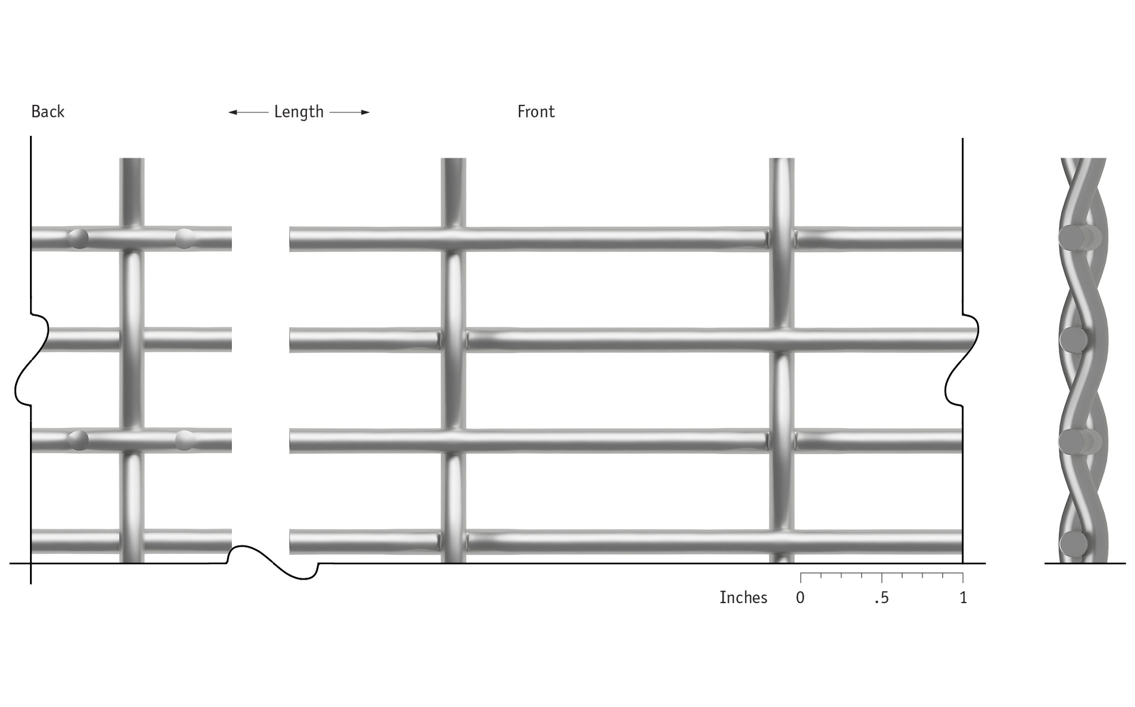The warp wires on this rigid grid mesh are spaced to emphasize a horizontal pattern. The Ellipse series varies by open area.
