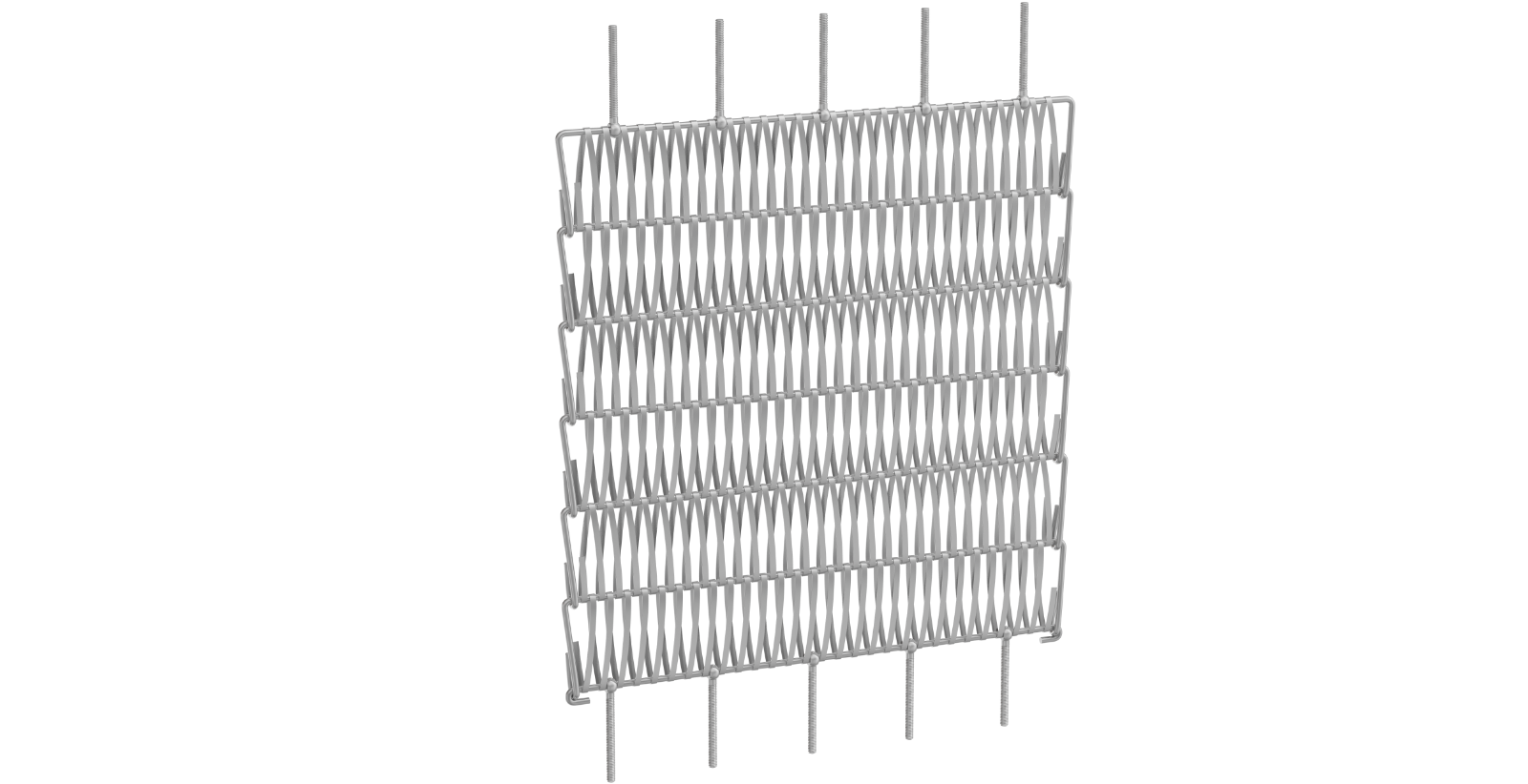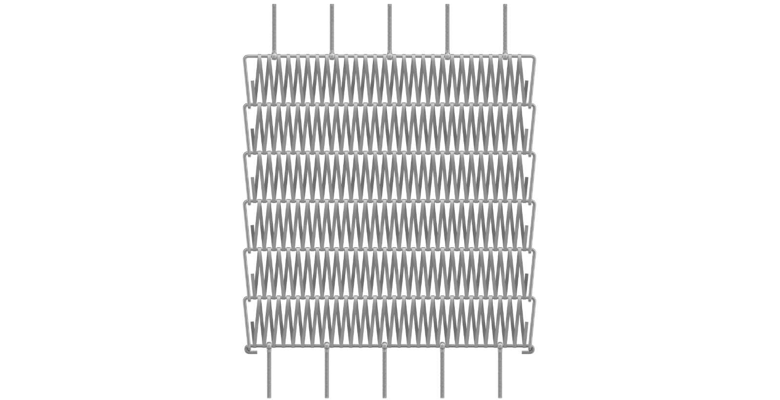 Eyebolts are attached to the cross rod of the metal fabric and are tensioned by turnbuckle or nut. The number of eye bolts is determined by tension loads.