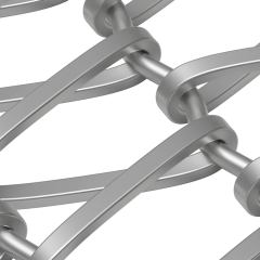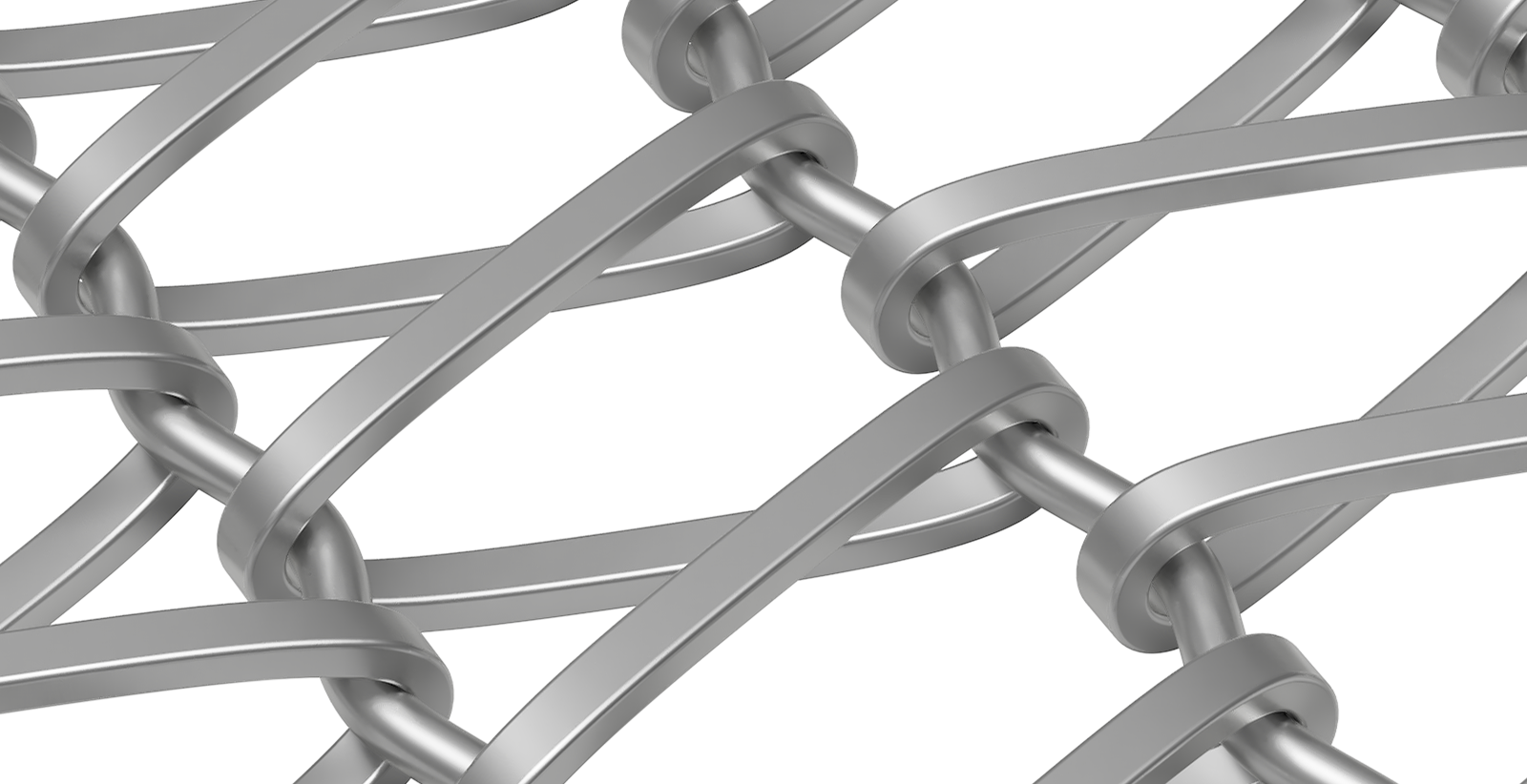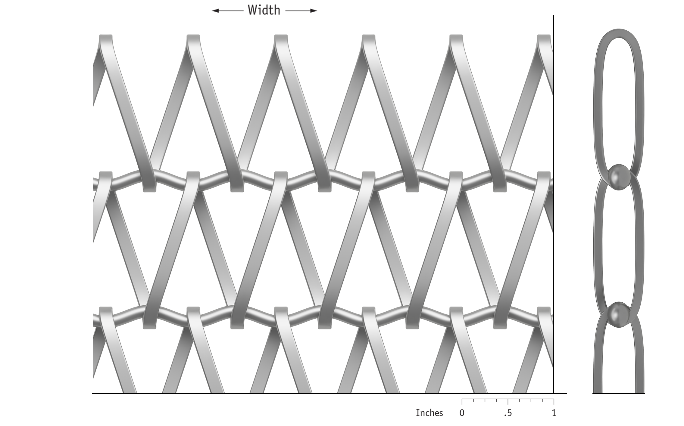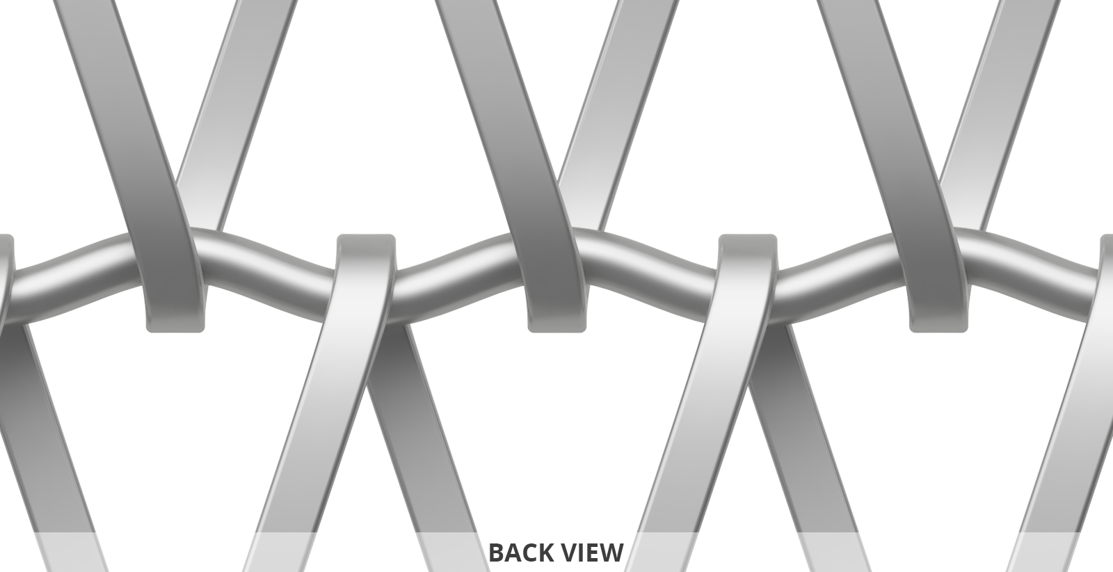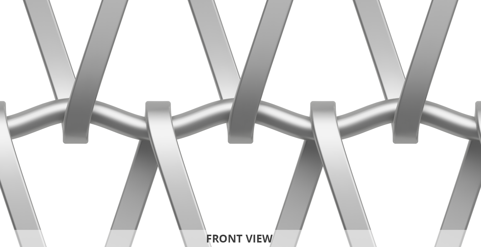 Helix features a spiraling flat wire hinged around a crimped connector wire allowing for flexibility in the length direction. The Helix series varies in wire diameter and mesh opening.