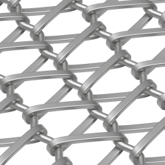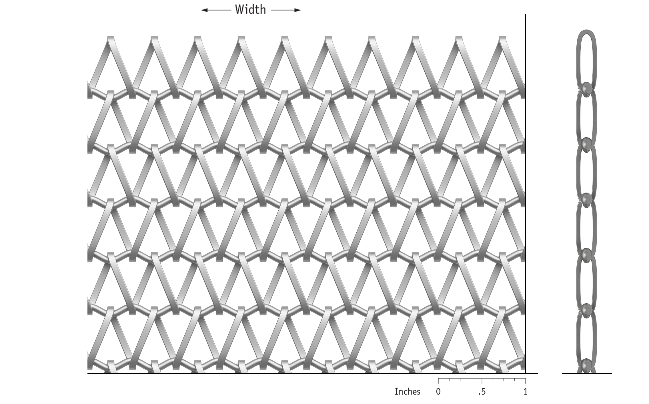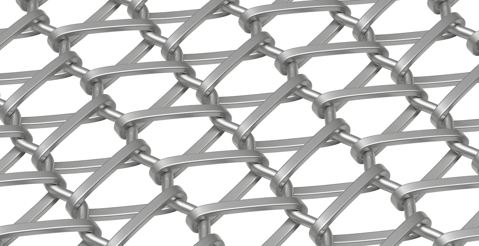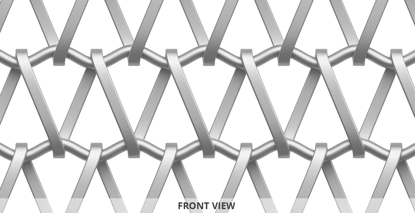 Helix features a spiraling flat wire hinged around a crimped connector wire allowing for flexibility in the length direction. The Helix series varies in wire diameter and mesh opening.
