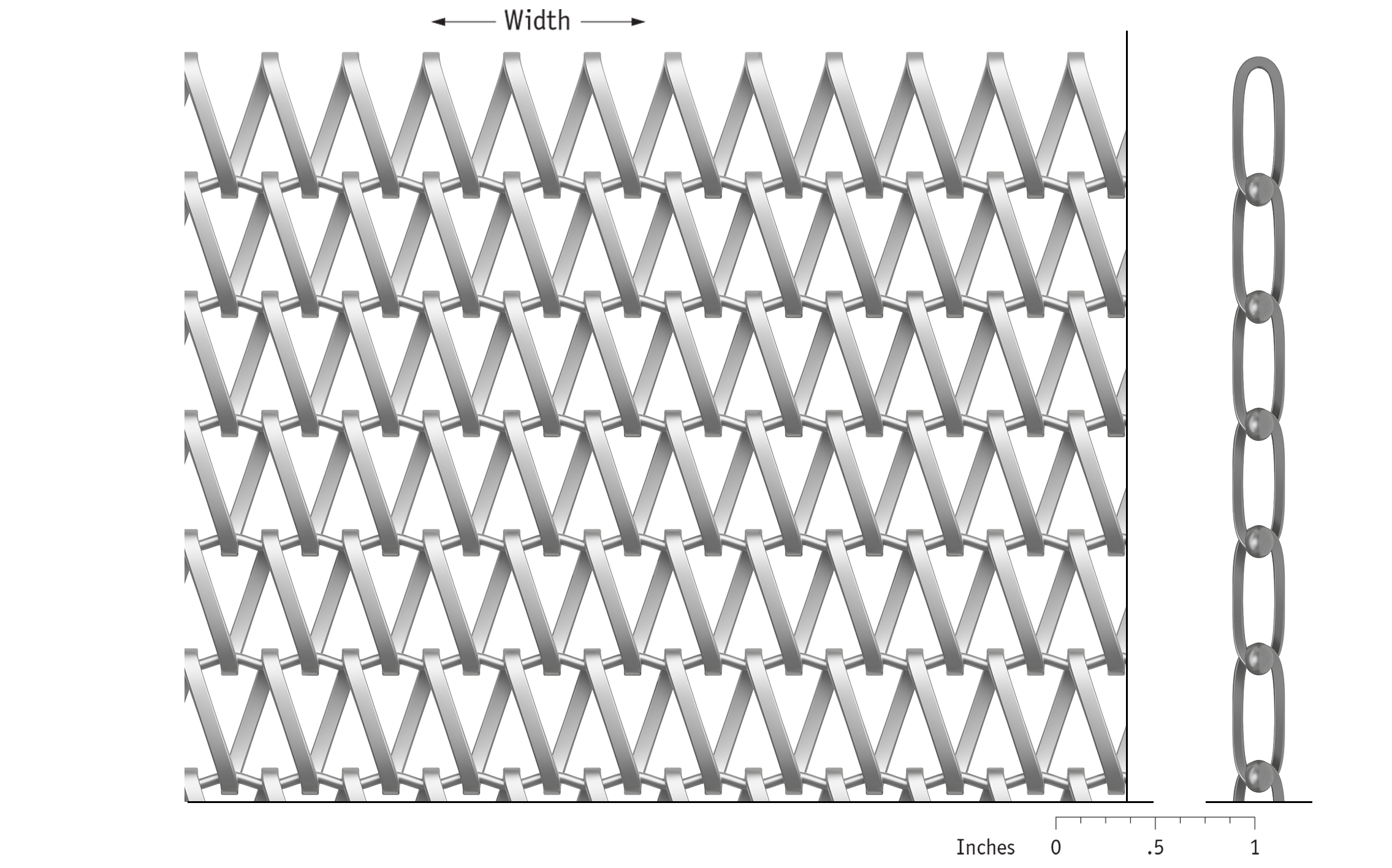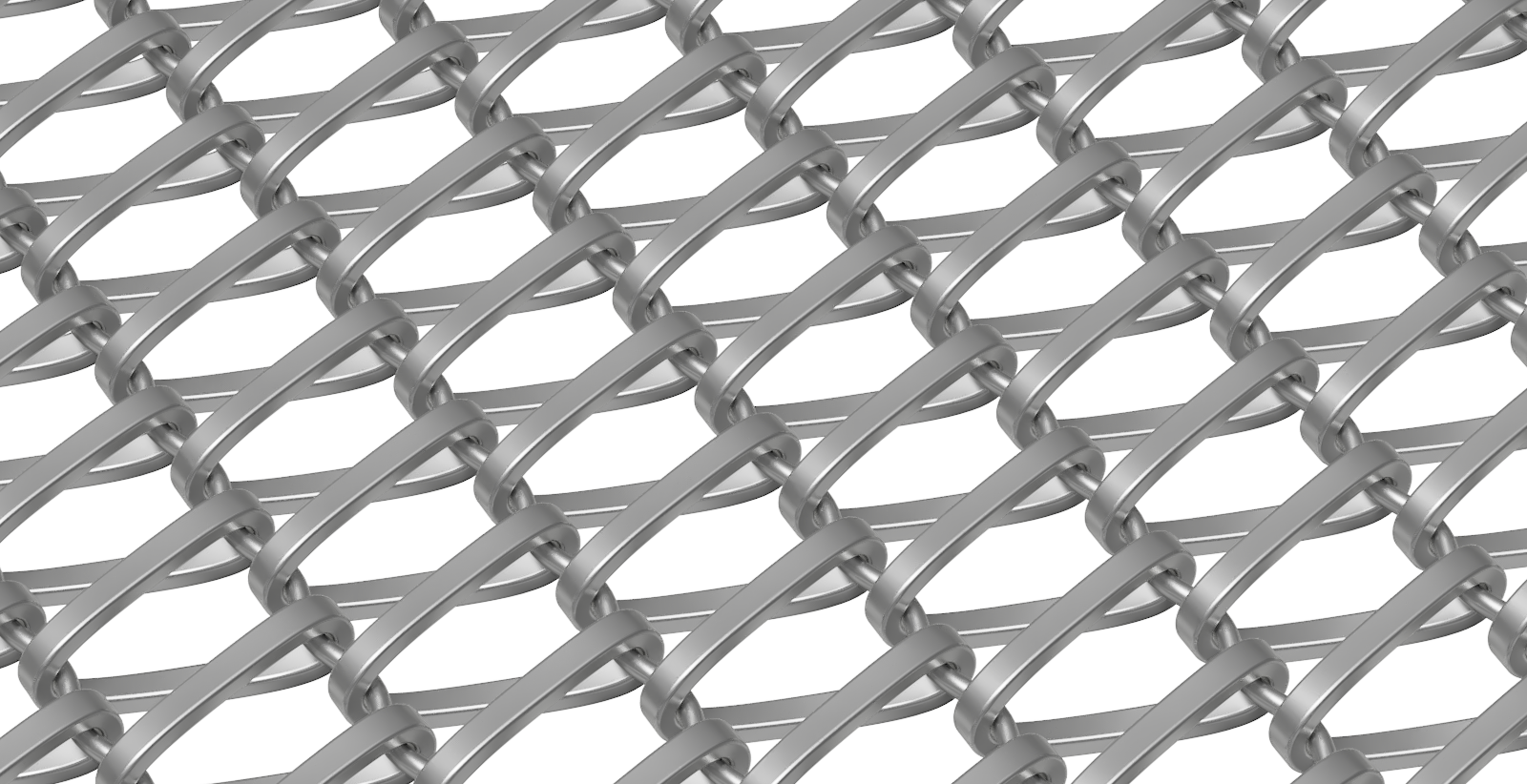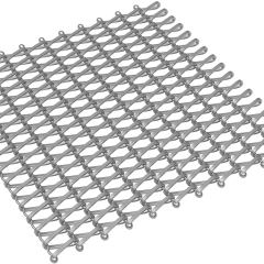 Helix features a spiraling flat wire hinged around a crimped connector wire allowing for flexibility in the length direction. The Helix series varies in wire diameter and mesh opening.