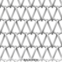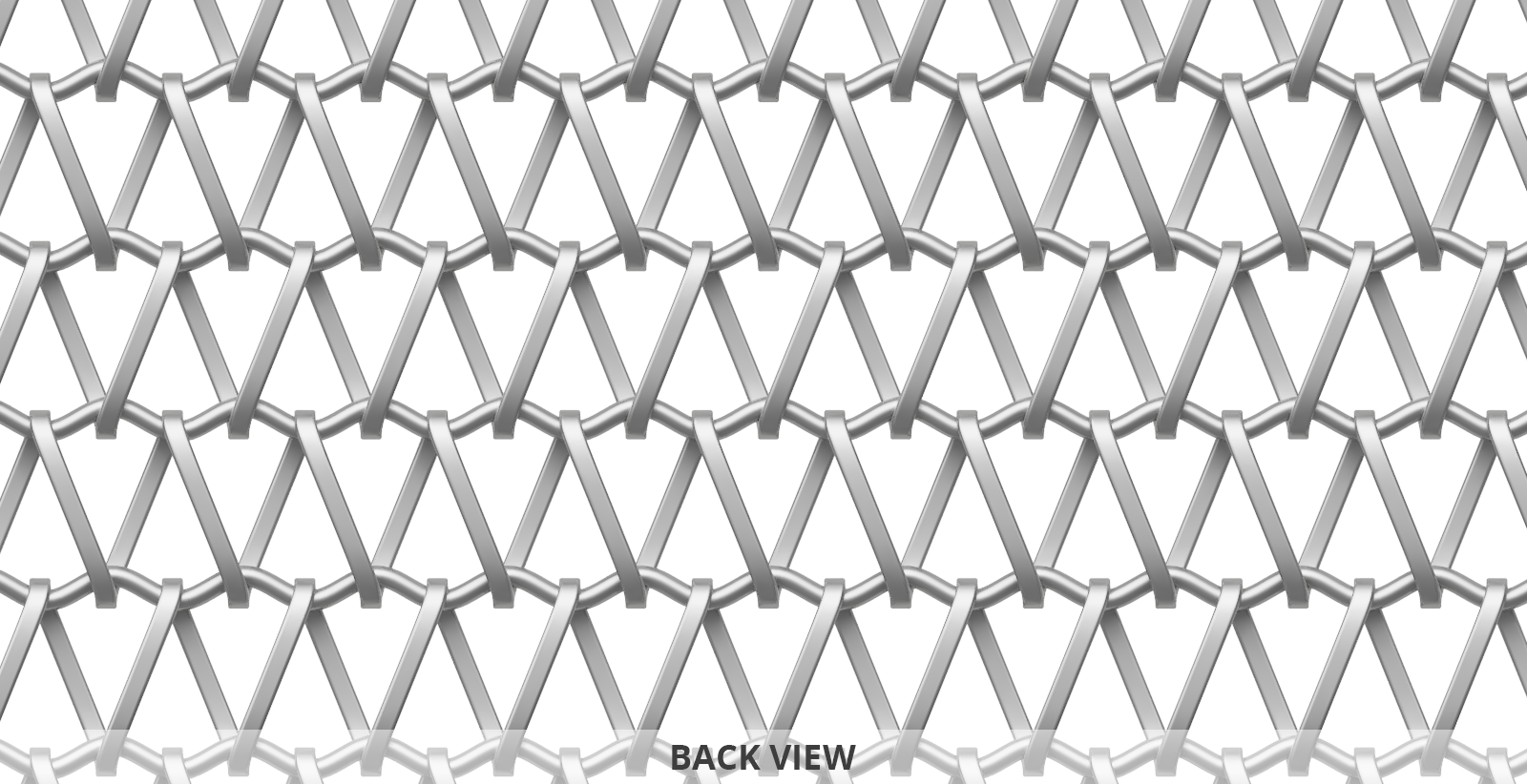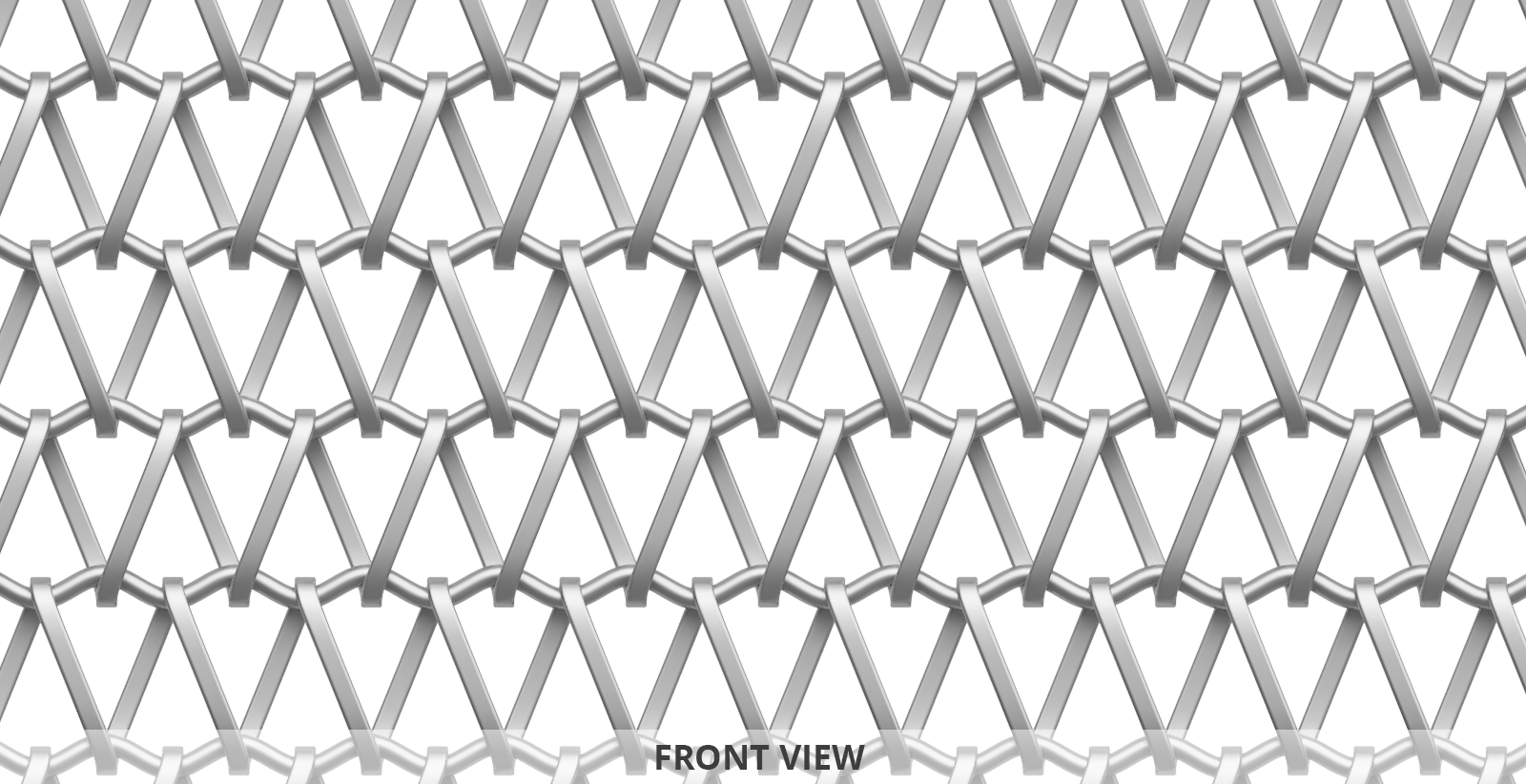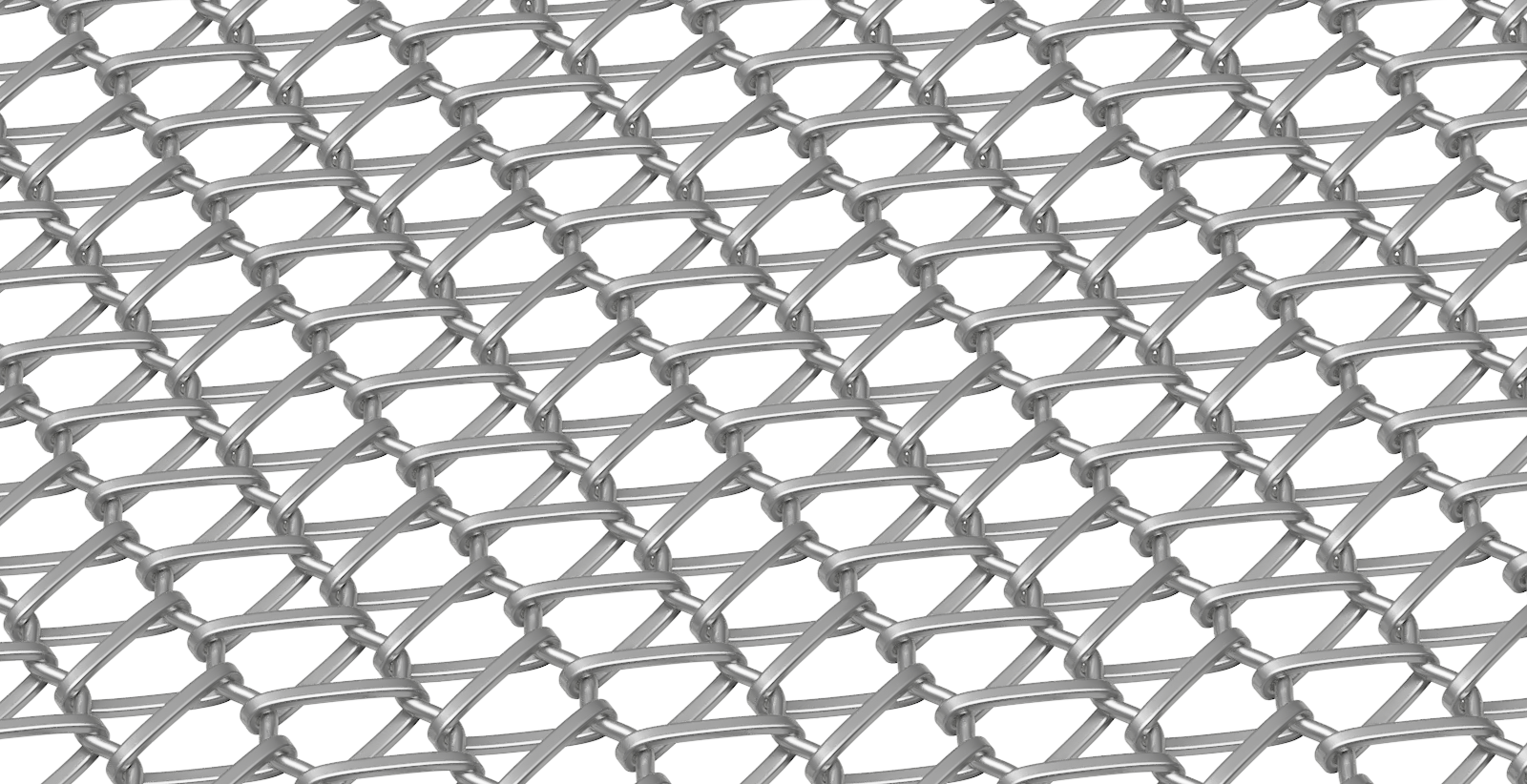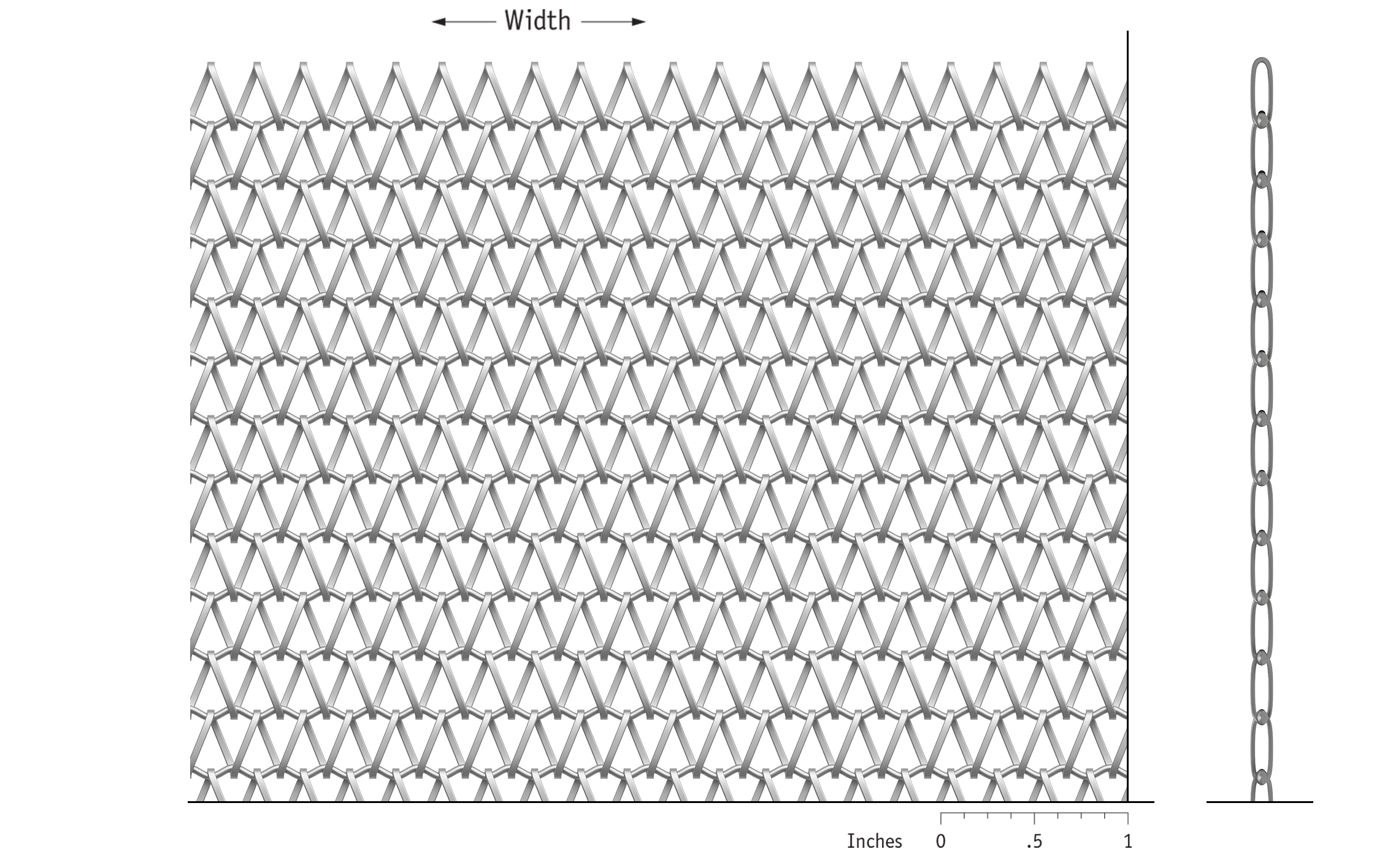 Helix features a spiraling flat wire hinged around a crimped connector wire allowing for flexibility in the length direction. The Helix series varies in wire diameter and mesh opening.