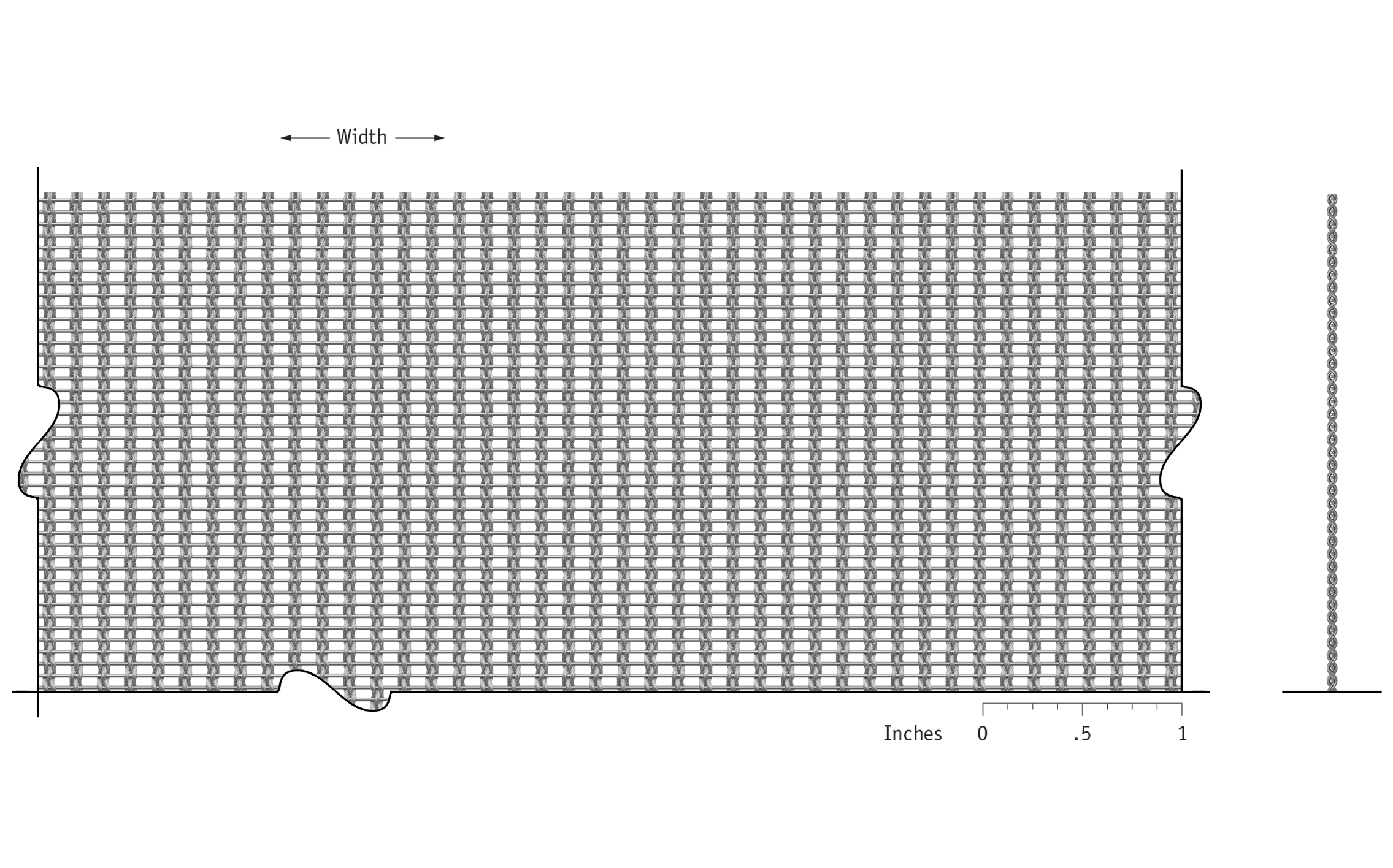 This intricate weave appears delicate but offers the strength of stainless steel. Kiwi is flexible in both the warp and weft directions.
