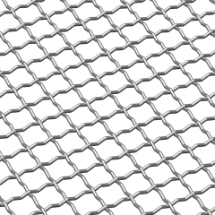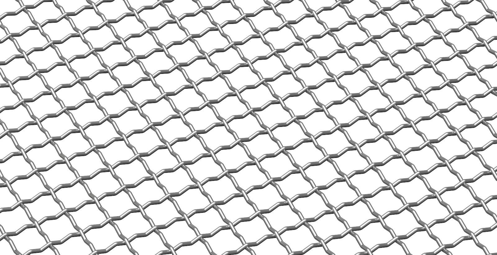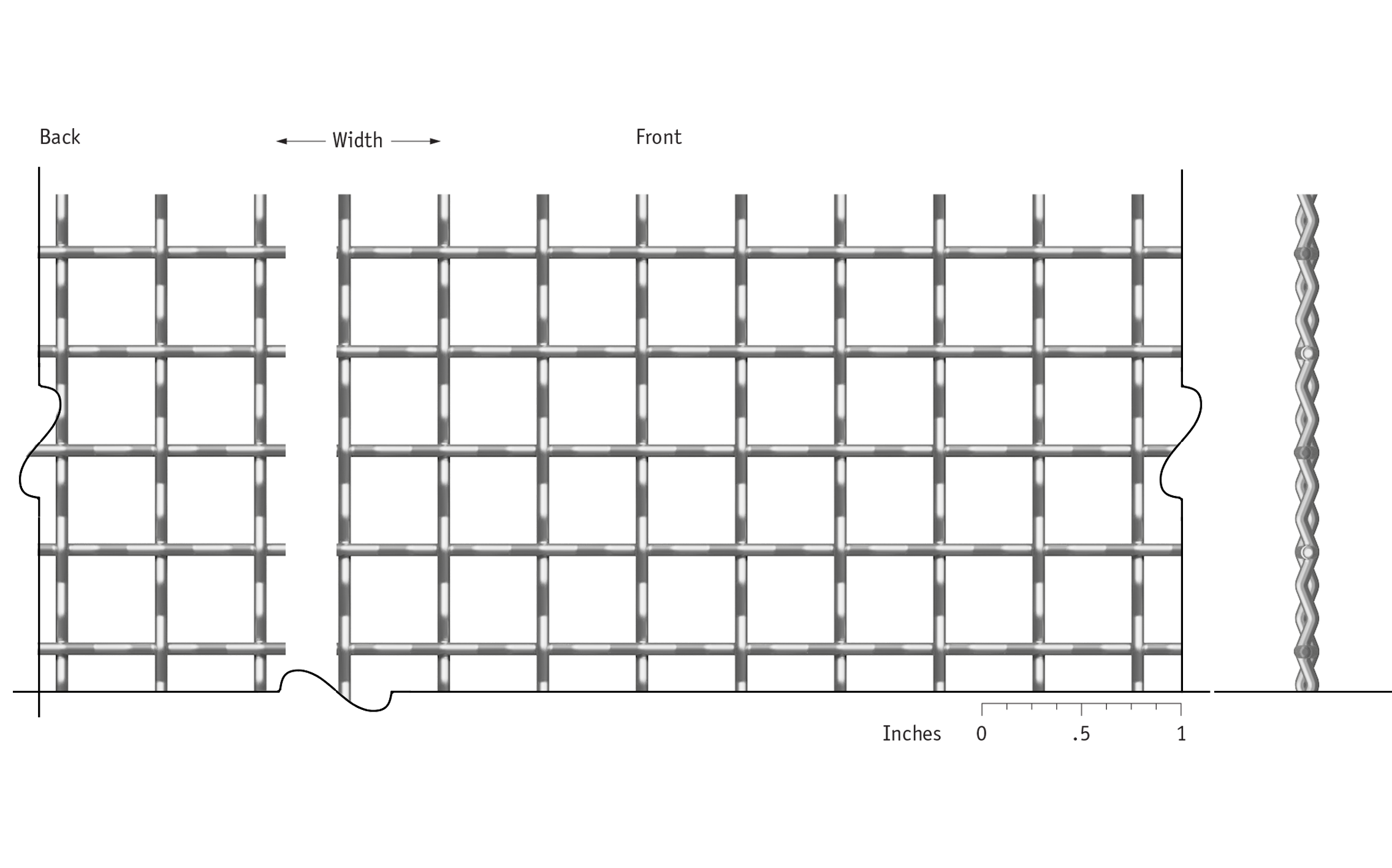 a double intermediate crimped weave utilizing extra crimps in the warp and weft wires between the intersections. This creates a rigid mesh with texture and flow.