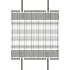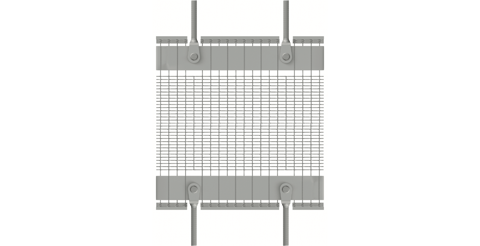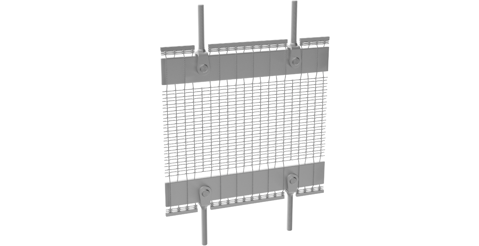 A flat bar woven into the mesh serves as a connecting member from the metal fabric to the top and/or bottom brackets.